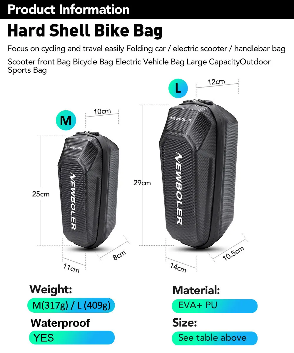 Especificaciones de la bolsa para manillar de scooter resistente al agua NEWBOLER BAG239