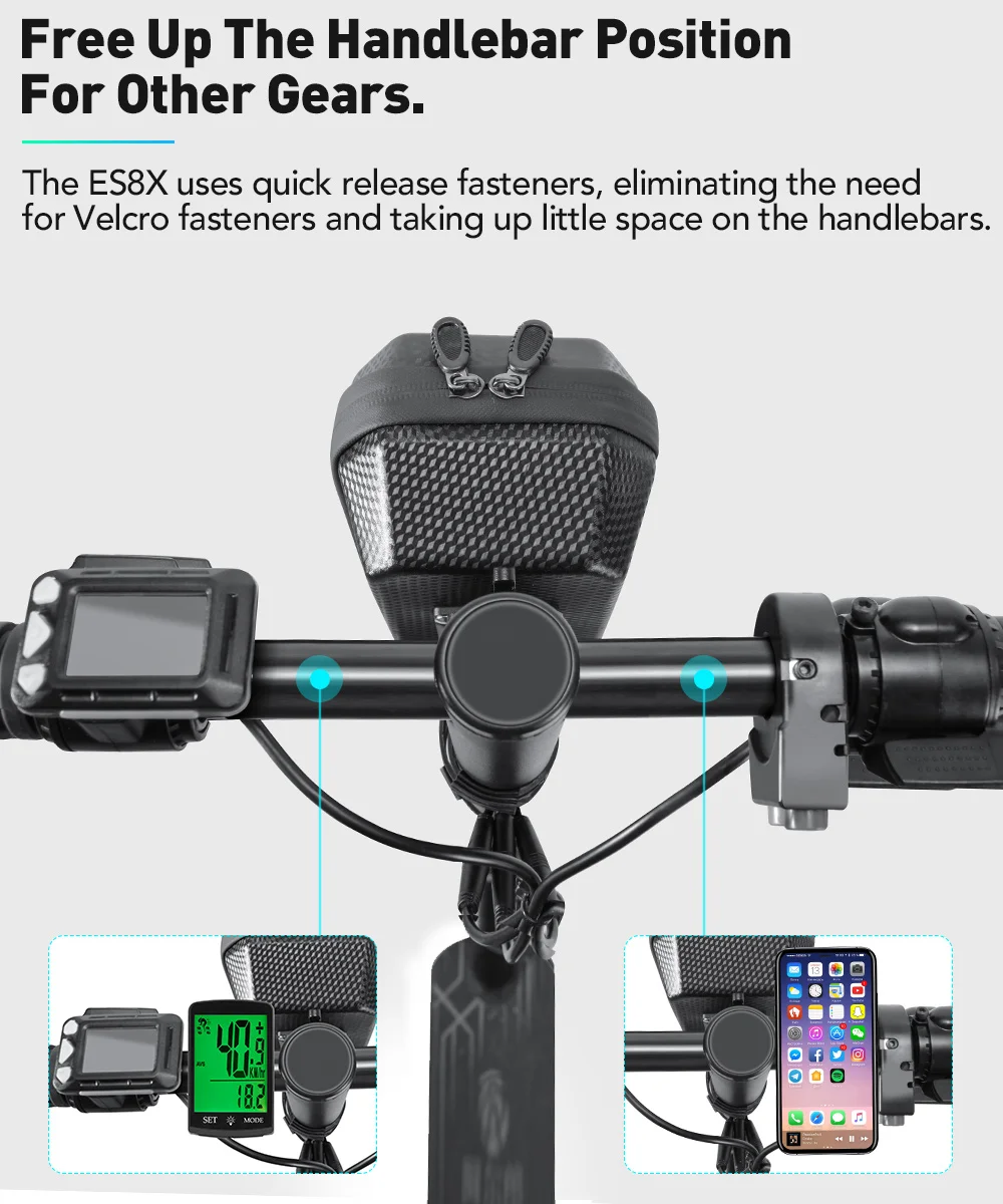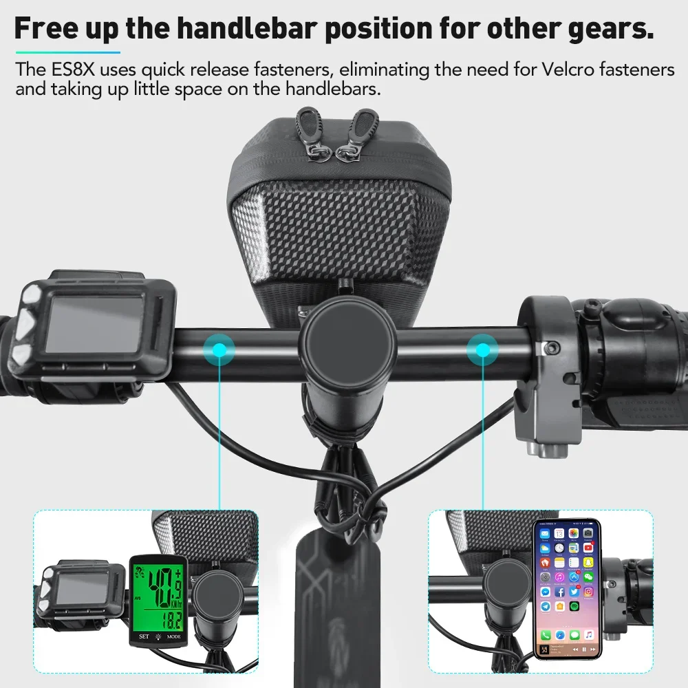 El mecanismo de liberación rápida emplea un diseño robusto de ajuste por fricción que protege su bolsa contra las vibraciones y al mismo tiempo permite retirarla con una sola mano al desmontar o transferir entre scooters. Cinco litros de capacidad utilizable para bebidas, refrigerios, teléfonos, llaves y elementos esenciales para el viaje diario sin crear una distribución de peso excesiva en la parte superior que comprometa la estabilidad o la respuesta al girar. El material EVA resistente al agua repele la lluvia y las salpicaduras mientras mantiene la flexibilidad en rangos de temperatura, desde inviernos helados hasta una exposición intensa al calor del verano. El hardware de montaje universal se adapta a diámetros de manillar que van desde scooters urbanos compactos hasta modelos de tamaño completo, incluida la compatibilidad con Xiaomi y plataformas equivalentes. Las costuras reforzadas a lo largo de todas las costuras y puntos de tensión garantizan que esta bolsa delantera para scooter eléctrico resista el uso diario en terrenos urbanos y paseos recreativos más largos.